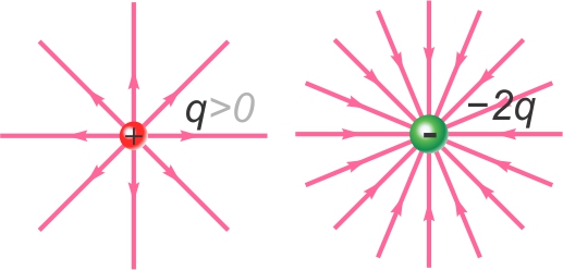 d'elle un champ électrique dirigé vers l'extérieur (les lignes de